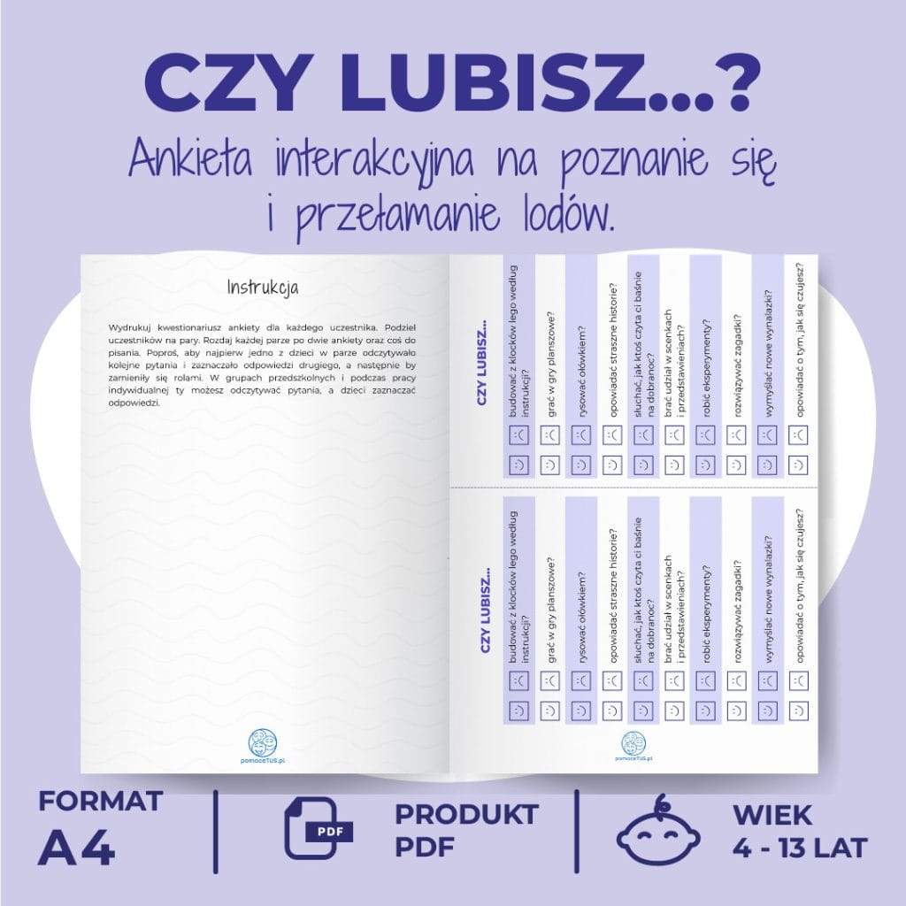 Pomoce TUS to baza pomocy terapeutycznych stworzona z myślą o psychologach, pedagogach i terapeutach, pracujących z dziećmi i młodzieżą. Nasze pomoce są wykorzystywane w punktach przedszkolnych i szkolnych oraz prywatnych gabinetach.Wszystkie prace stworzone są przez nasze autorki Joannę Węglarz oraz Dorotę Bentkowską.