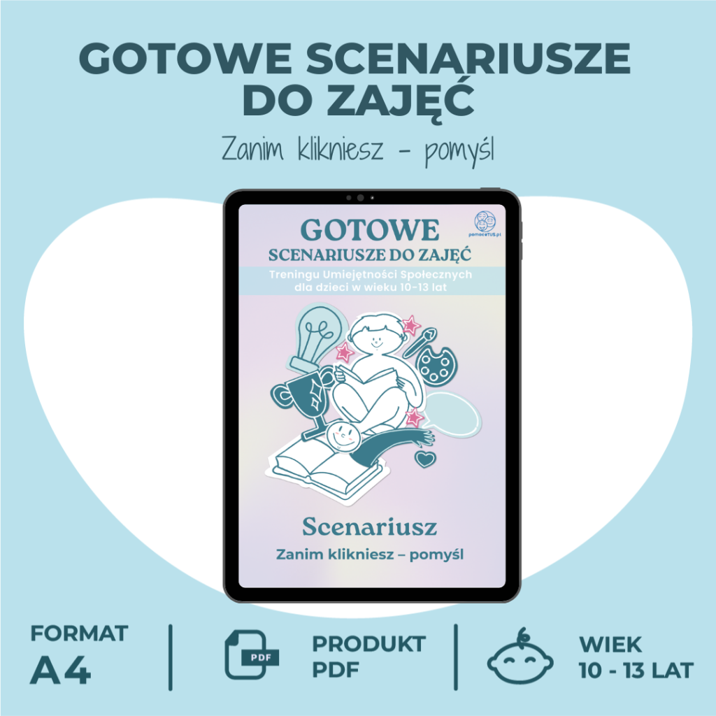 Gotowe Scenariusze do zajęć Treningu Umiejętności Społecznych dla dzieci w wieku 7-9 lat – Bezpieczeństwo online – szukam wsparcia (PDF)